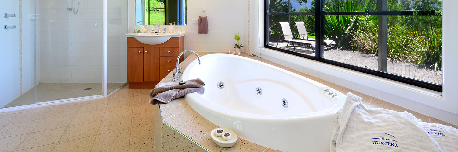 Sip a refreshing drink while cooking up a storm on the BBQ and then dine alfresco on your verandah overlooking the lush green valley below. Or simply lie back and have a relaxing soak, while taking in the breathtaking view from the large oval spa bath for two.